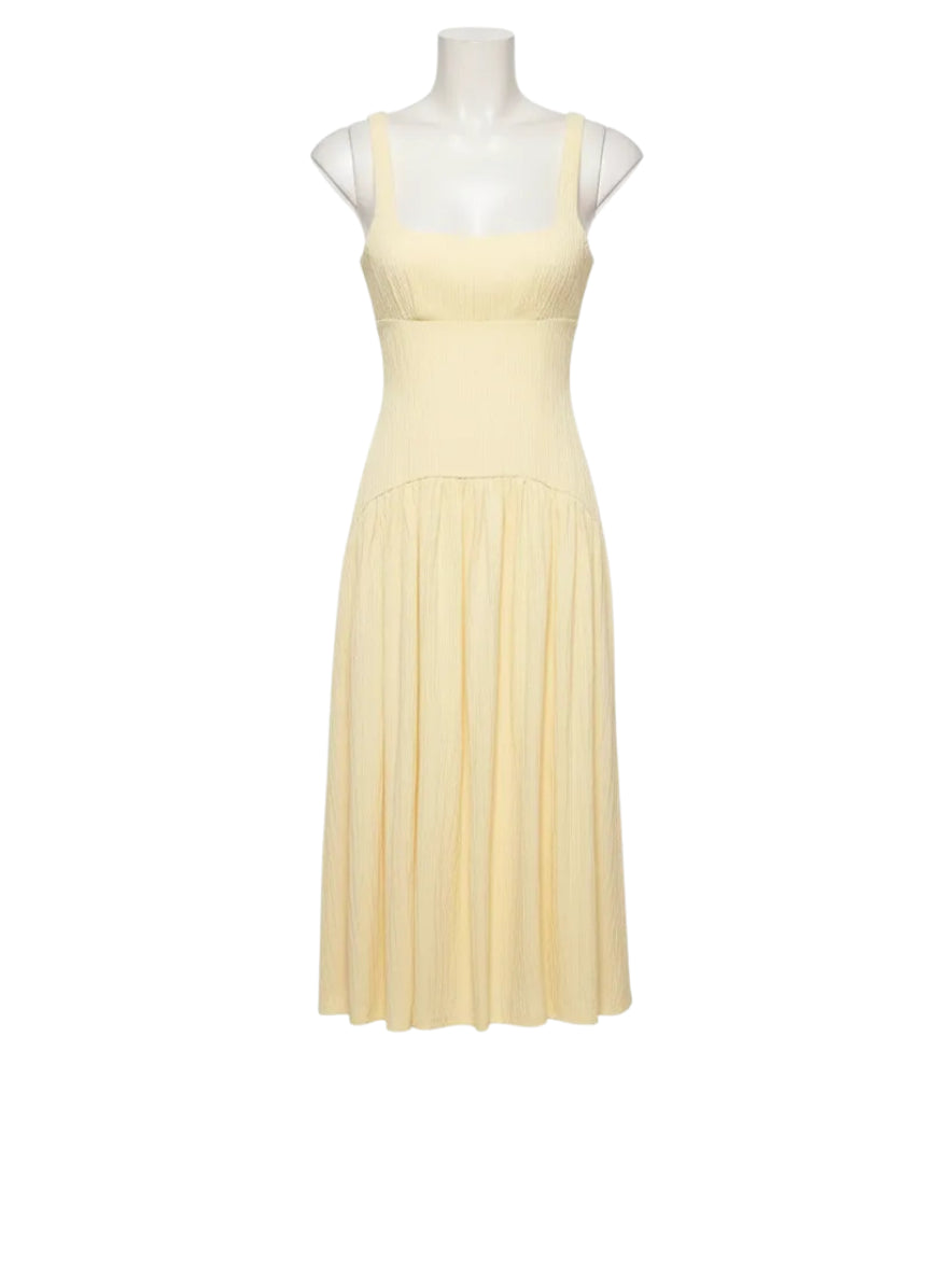 A dress that turns even the simplest moment into something special. The square neckline, thin straps and midi length create an elegant, naturally feminine silhouette. Fresh, modern, and touched with that classic charm that always earns compliments — perfect for warm days, casual dinners, and moments when you want to feel effortlessly flawless.